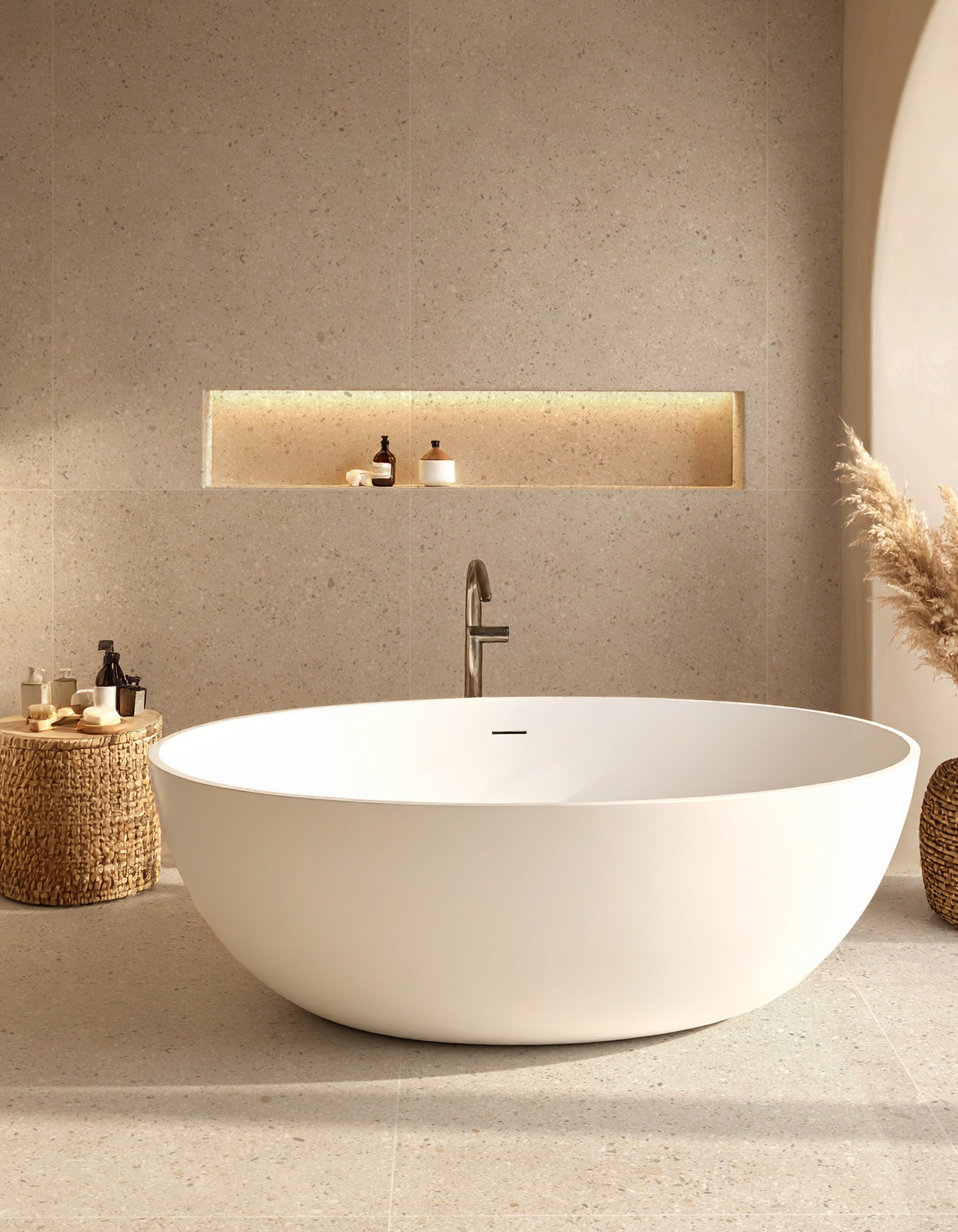 Además de los revestimientos para piscinas, el Grupo Ceral presenta los nuevos lanzamientos en porcelánico de la marca Belle, que llegan al mercado con dos nuevos formatos, ampliando las posibilidades de creación en proyectos residenciales y comerciales. El formato 63x121 ya forma parte del portafolio, aportando un aspecto moderno y elegante, mientras que el formato 1,20x1,20, previsto para dentro de poco, refuerza la apuesta por los grandes formatos, una tendencia consolidada en la arquitectura contemporánea.